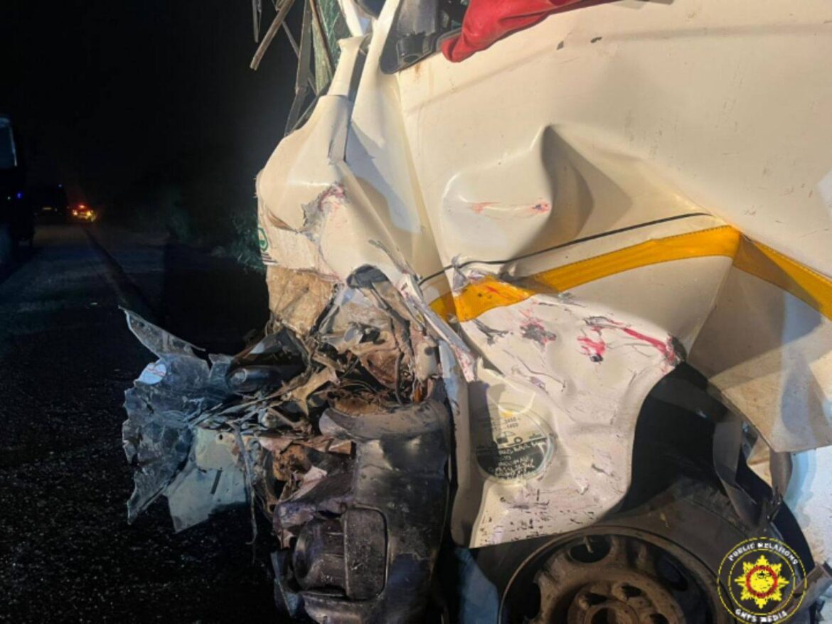 The Ford Transit bus, registered as GT K5676-19, was en route from Kumasi to Drobo when it collided with an ambulance transporting a pregnant woman from Drobo to Komfo Anokye Teaching Hospital in Kumasi for emergency care.