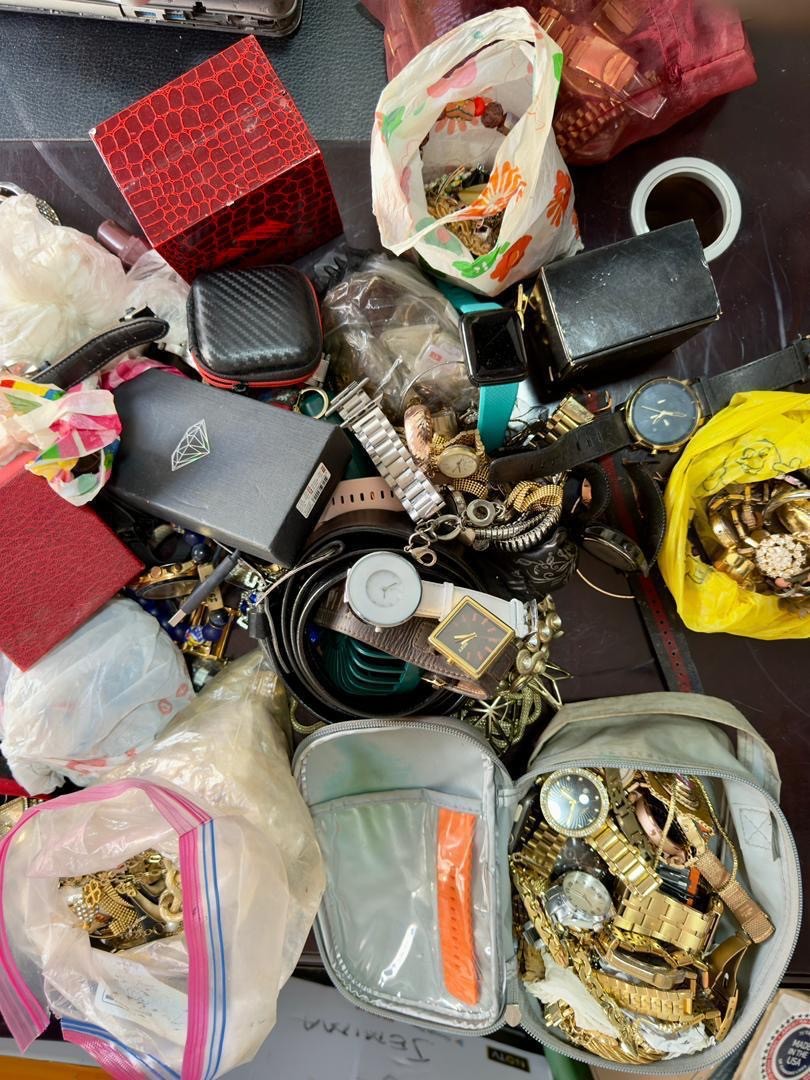 The recovered items include gold watches, jewellery, mobile phones, and a television set.